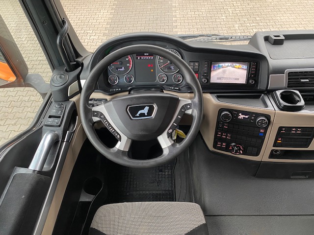 ABS, EDC, blokada mostu, retarder, hamulec podjazdowy, ostrzegawcza sygnalizacja świetlna, immobilaizer, szyberdach, radio fabryczne z kamerą cofania, klimatyzacja automatyczna, tempomat, elektryczne szyby, elektryczne lusterka, fotel kierowcy pneumatyczny, kierownica wielofunkcyjna.