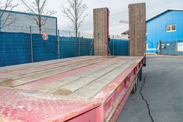 Przyczepa niskopodwoziowa z najazdami / najazdy otwierane hydraulicznie